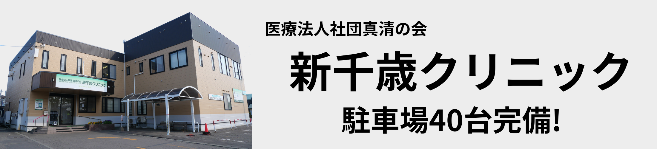 お知らせ 2025.12.29 キャンセル規約変更のお知らせ 2025.12.19 年末年始休業日(12/30~1/4)のお知らせ 2025.11.08 グルタチオンの製剤が変更となります お願い 全てのメニュー予約制になっておりますので、事前にご予約してからの来院をお願いいたします。 予約時間の5分前までにはご来院ください。予約時間を過ぎてご来院された場合、施術ができない場合がございます。当日キャンセル・変更の場合はキャンセル料が発生いたします。※キャンセル規約をご確認ください。 予約は30分ごとの時間帯予約となっております同じ時間帯に複数の方がご予約するため、待ち時間に個人差が生じます。ご了承ください。 例) 10:00予約→10:00までに来院、10:00-10:30にご案内ご協力、よろしくお願いいたします🙇 施術メニュー お悩み別で探す 美容施術 医療脱毛 全身(顔・VIO除く) 全身(顔・VIO・体幹除く) オールフェイス ヒゲ VIO Sパーツ Mパーツ Lパーツ アートメイク 眉|アイブロウ アイライン リップ ホクロ 頭皮 パラメディカル・アピアランスケア 美容機器 ピコレーザー -ピコスポット(医師施術) -ピコレーザートーイング -ピコフラクショナルレーザー レーザーフェイシャル レーザーシャワー レーザータイト二ング ハイドラフェイシャル サリチル酸マクロゴールピーリング ベビーハイフ ダーマペン 美容注射・点滴・医薬品 美容注射(Dr.手打ち) ボトックス -ボトックスビスタ -ボツラックス ヒアルロン酸 -ニューラミスライト -ニューラミスディープ -ボライト -ボルベラ -ボラックス 肌育注射 -リジュランi -プルリアルデンシファイ 脂肪溶解注射 -カベリン 美容注射 プラセンタ注射 にんにく注射 グルタチオン注射 脂肪燃焼ダイエット注射 美容点滴 NMN点滴 美容鍼※電話予約のみ 美容鍼 医薬品 美容 -ニキビ内服セット -美白内服セット -イソトレチノイン -まつげ美容液 AGA -デュタステリド -ミノキシジル ED -シナジナフィル -タダラフィル たるみ・ハリ ベビーハイフ レーザータイト二ング NMN点滴 美容鍼※電話予約のみ しわ ボトックス 小じわ ピコレーザー レーザーフェイシャル サリチル酸マクロゴールピーリング ダーマペン プルリアルデンシファイ リジュランi ニューラミス 小顔 ベビーハイフ ボトックス 美容鍼※電話予約のみ しみ・そばかす ピコスポット(医師施術) ピコレーザー レーザーフェイシャル サリチル酸マクロゴールピーリング 美白内服セット グルタチオン注射 NMN点滴 VC-OMGローション 肝班 ピコレーザー 美白内服セット ニキビ ハイドラフェイシャル サリチル酸マクロゴールピーリング ニキビ内服セット イソトレチノイン ニキビ跡 ピコレーザー ダーマペン 毛穴の開き ボトックス ダーマペン ピコレーザー 毛穴の黒ずみ ハイドラフェイシャル サリチル酸マクロゴールピーリング 赤ら顔 レーザーシャワー 疲労等 NMN点滴 グルタチオン注射 にんにく注射 肩こり・肩ハリ ボトックス ワキガ・多汗症 ボトックス 発毛・薄毛 デュタステリド(内服) ミノキシジル(外用薬) ED シルデナフィル (内服) タダラフィル (内服) アクセス 〒066-0026 北海道千歳市住吉4丁目2−3 千歳駅から車•バス8分「青葉中学校前」停 徒歩1分無料駐車場 40台 お支払方法 現金払いの他、以下の決済方法に対応しています!
