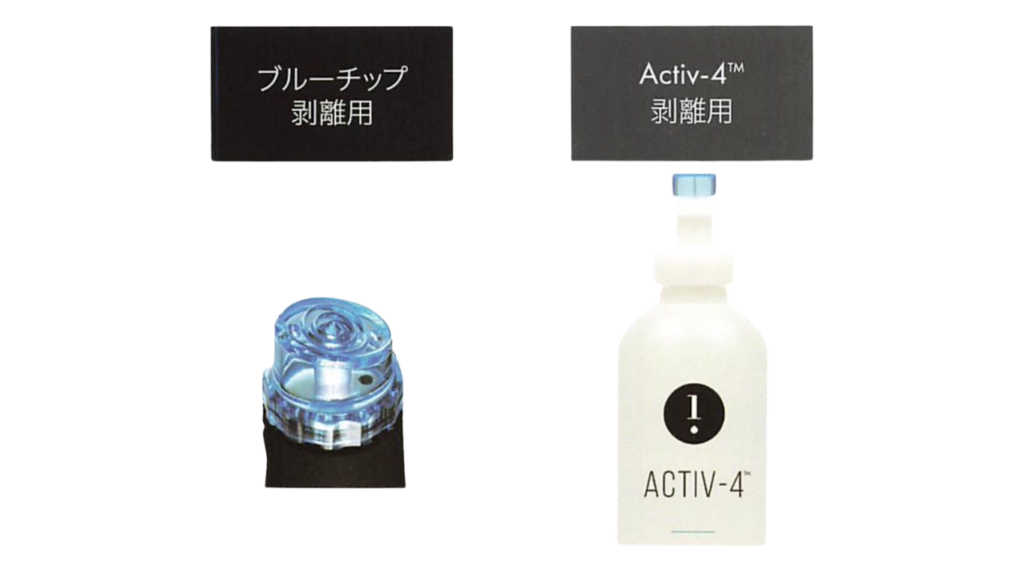 塩酸グルコサミンおよび乳酸で、皮膚上の皮脂と汚れを軟化させ、ブルーチップで物理的に剥離しながら汚れを吸引します。