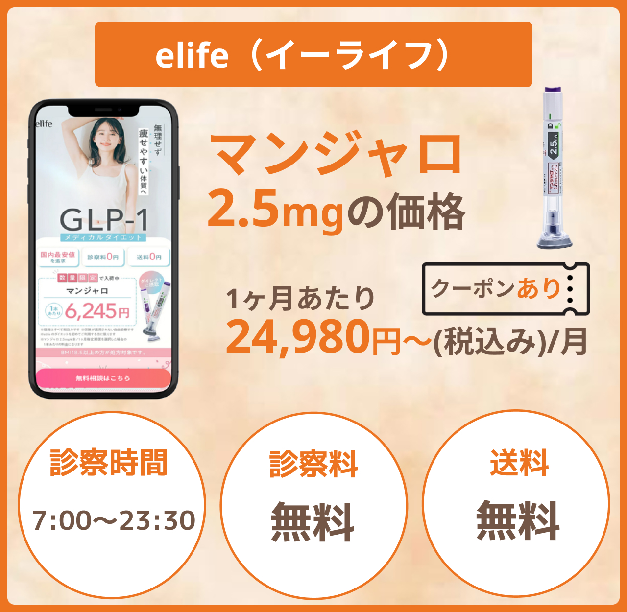 elifeで入手できるマンジャロの価格は以下の通りです。
