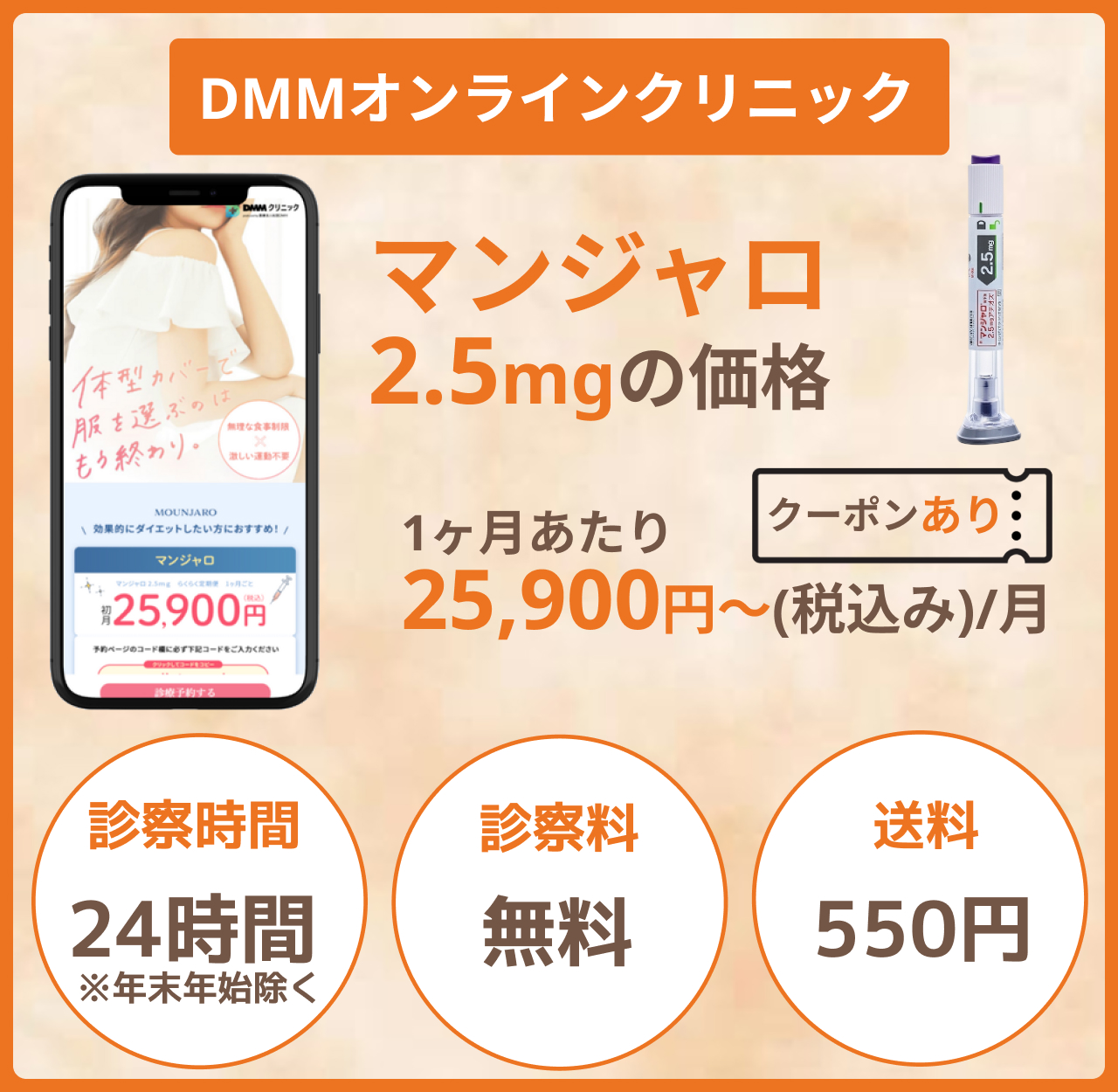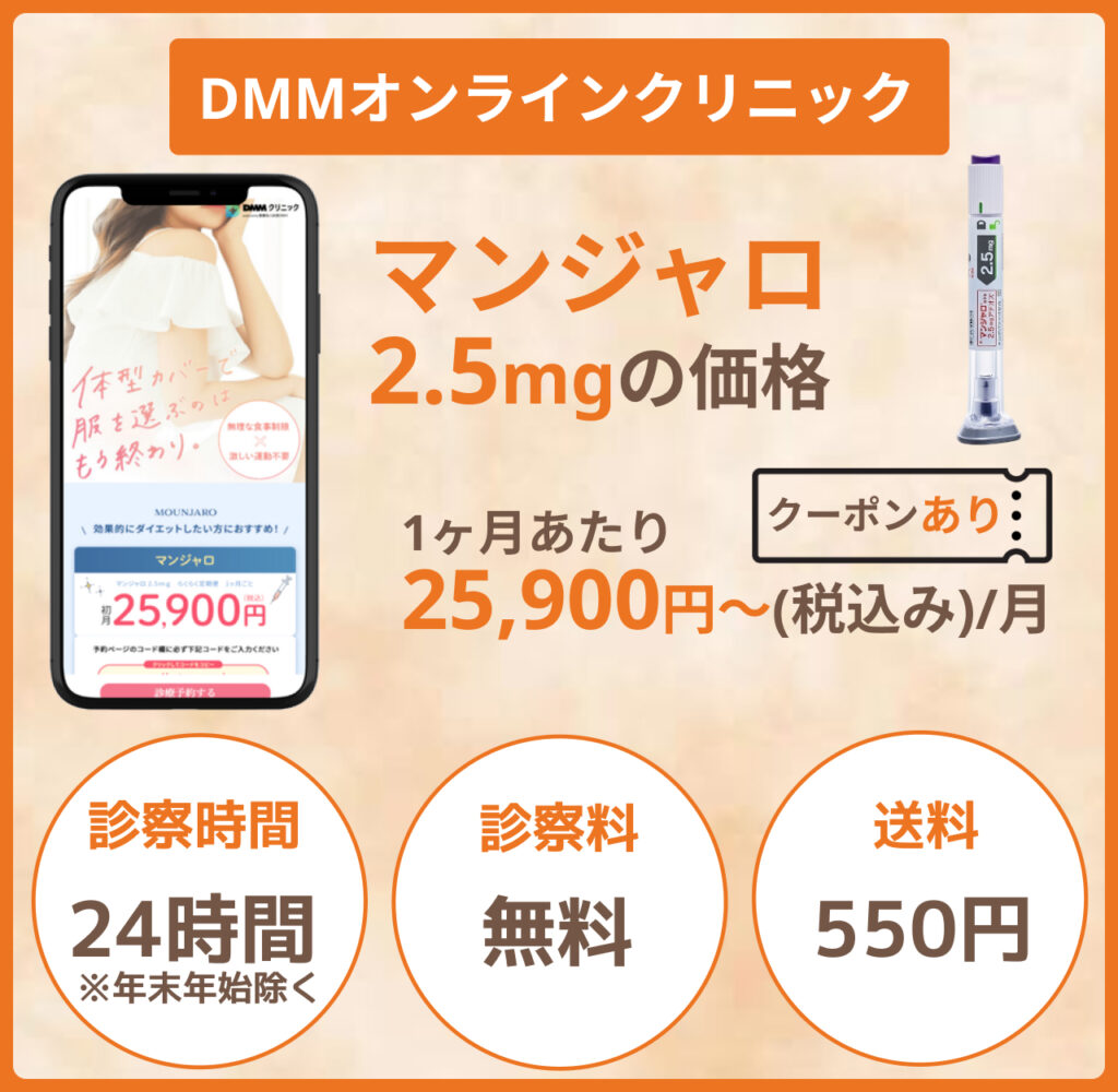 DMMオンラインクリニック | 25,900円~/4本 ※クーポン適用価格 (2ヶ月目以降は30,900円) |